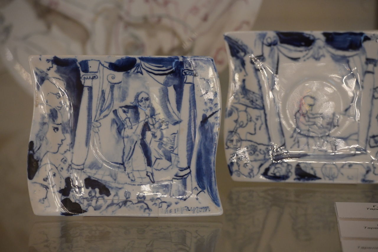 Впервые демонстрируется расписанный художником фарфор из его домашней коллекции. И рисунки, посвященные 80-летию Великой Победы.