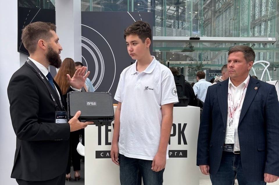 На стенде «Технопарка Санкт-Петербурга» в рамках международного форума беспилотных авиационных систем состоялась торжественная передача портативного обнаружителя БПЛА «Булат» от компании 3mx юному школьнику из Казани по имени Булат.