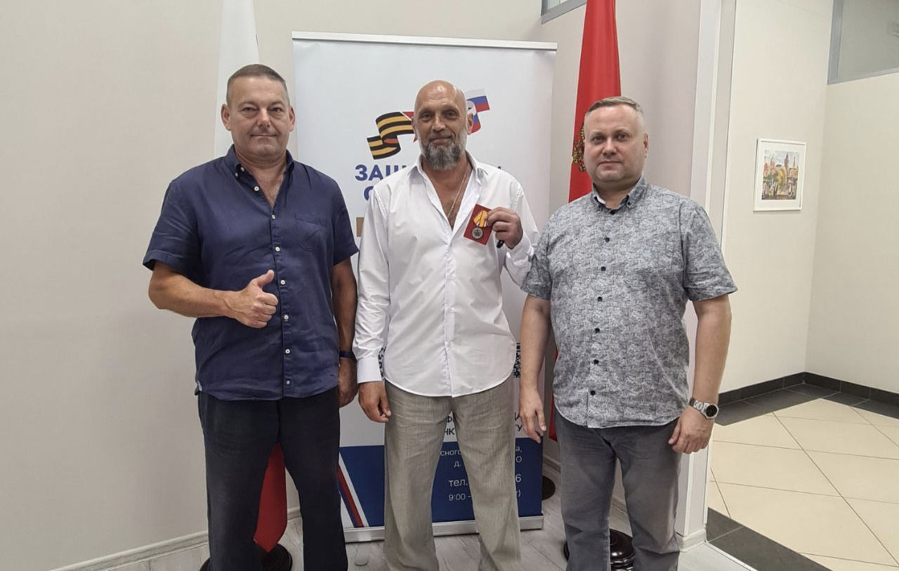Участник СВО Андрей Гончаров, который, как позднее оказалось, служил с Алексеем на одном направлении, передал герою заслуженный знак отличия. Также ветеран был представлен к государственной награде – сотрудники фонда оказывают всю необходимую помощь для её получения.