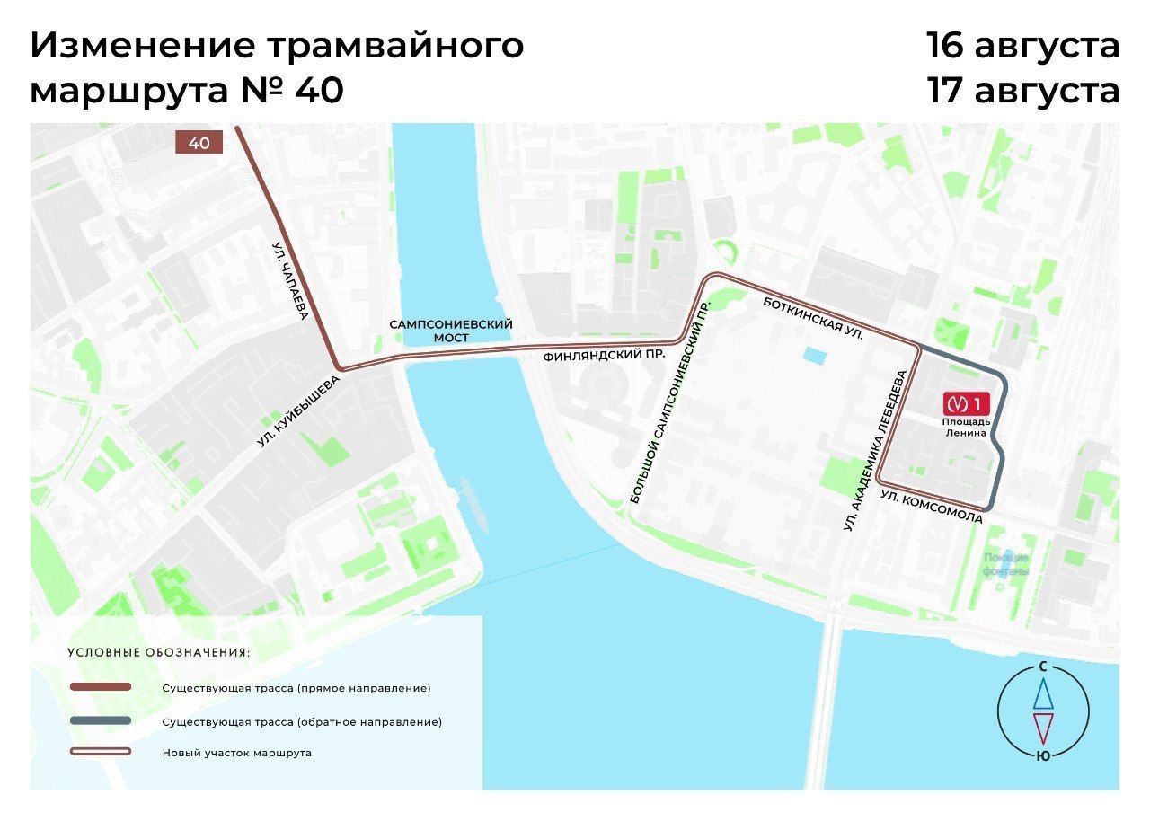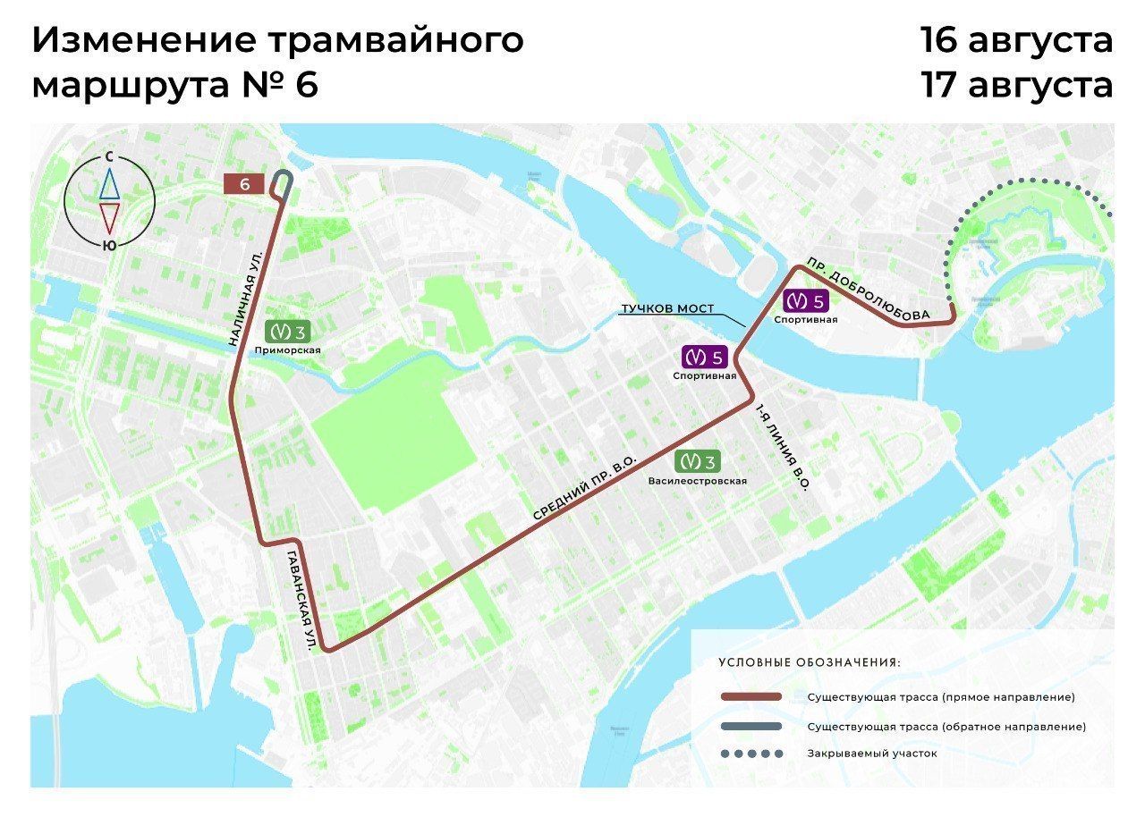 В Петербурге 16 августа и 17 августа изменятся маршруты трех трамваев