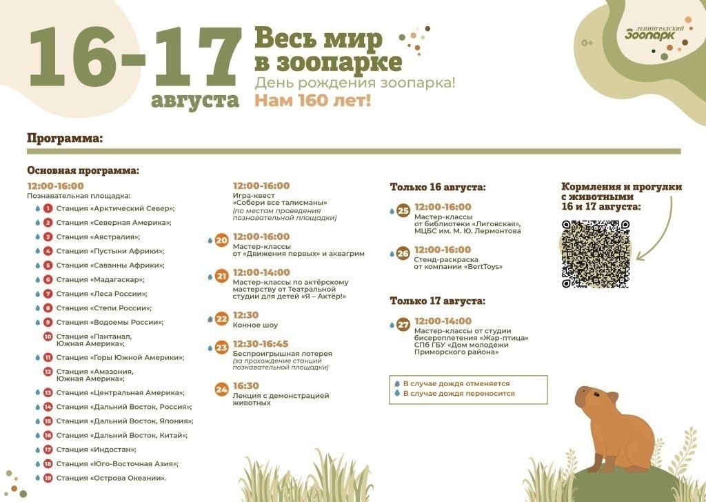 В честь 160-летия Ленинградского зоопарка 16 и 17 августа посетителей ждет праздничная программа «Весь мир в зоопарке».