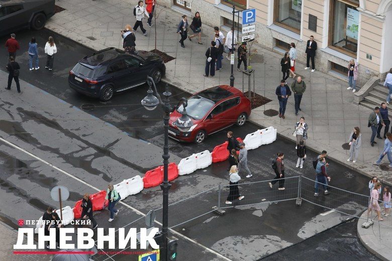 Фотокорреспондент «Петербургского дневника» запечатлел, как идут ремонтные работы на Невском проспекте.