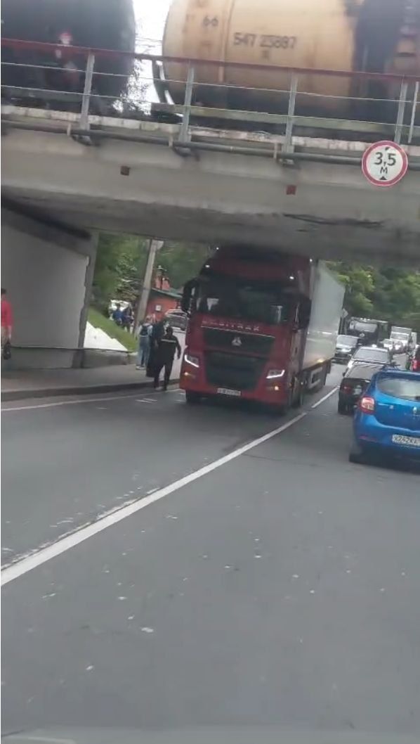 «Очередная фура не справилась с проездом. Въезд из области полностью заблокирован», – отметили авторы поста и поделились фотографиями с места происшествия.