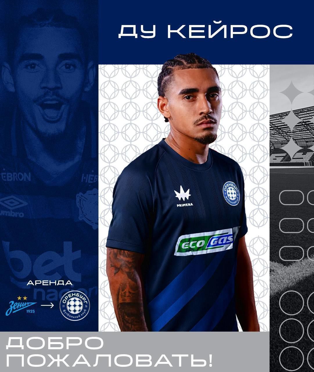 Петербургский «Зенит» отдал 25-летнего бразильского игрока Ду Кейроса в аренду ФК «Оренбург».