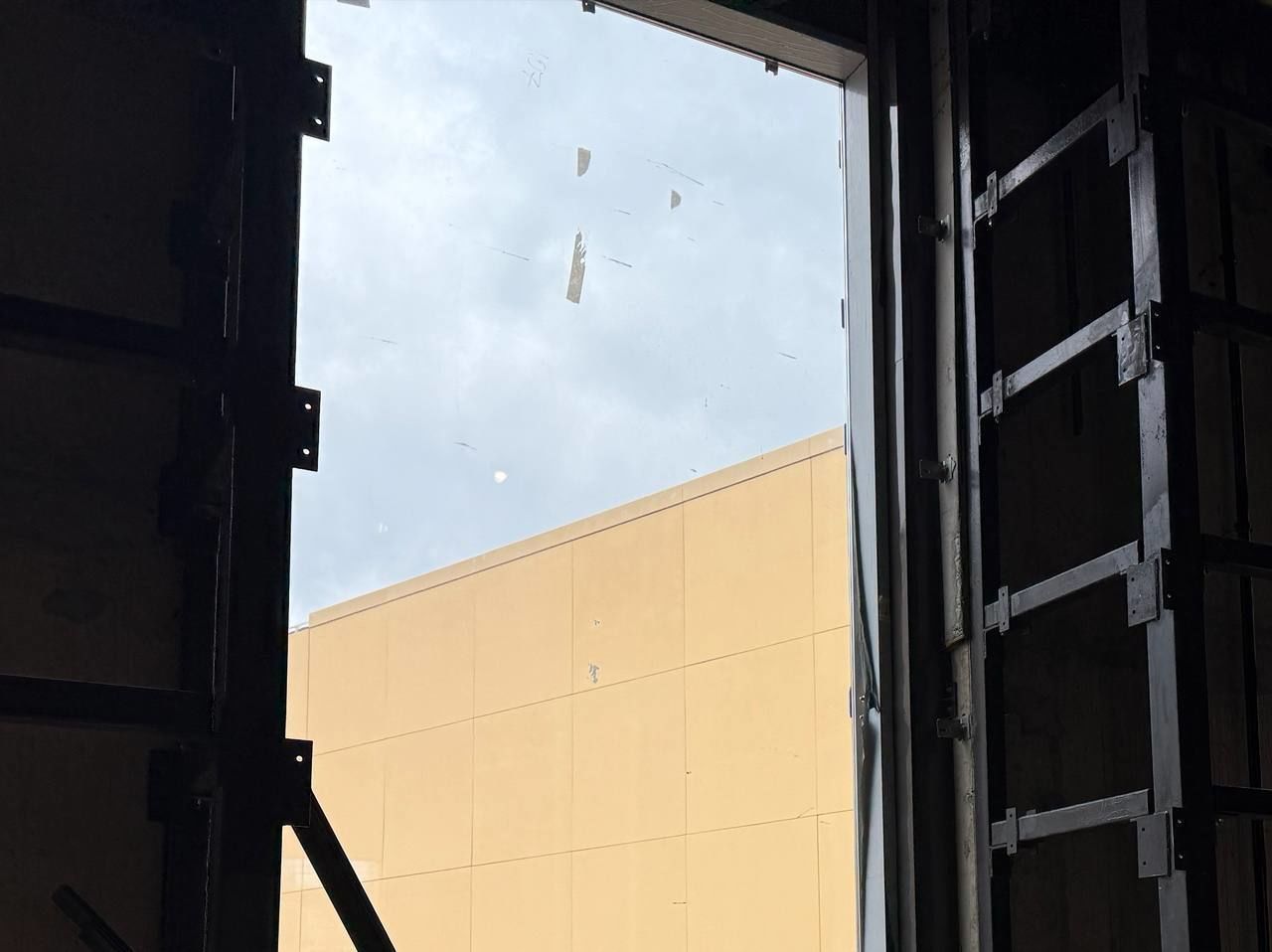 Масштабное остекление кассового зала предусматривает установку шести широкоформатных стеклопакетов. Планировка предусматривает: три окна с каждой стороны фасада, ширина каждого – 2 метра, а высота конструкции – 6 метров.