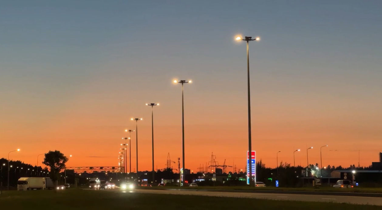 Проект реализовывался в два этапа. В 2023 году работы провели на участке от улицы Салова до КАД. Второй этап, завершенный в 2025 году, охватил территорию от кольцевой автодороги до Заводского проспекта. Особое внимание уделили установке светильников на 20-метровых опорах, что потребовало высокой квалификации специалистов.