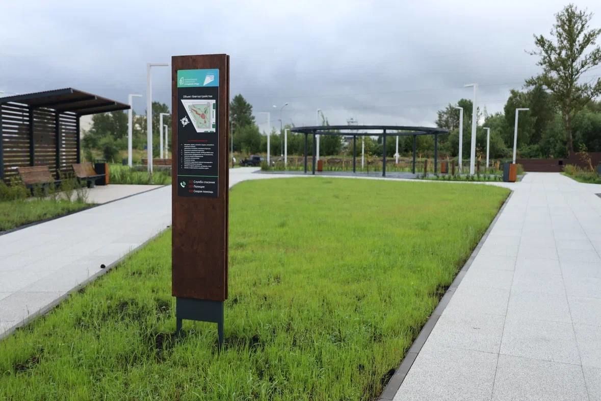 Ранее здесь располагалась свалка железобетона – весь строительный мусор вывезли в прошлом году. Там высадили 82 дерева и 277 кустарников, обустроили 399 метров живой изгороди, установили уличную мебель, смонтировали радиальные качели и организовали наружное освещение.