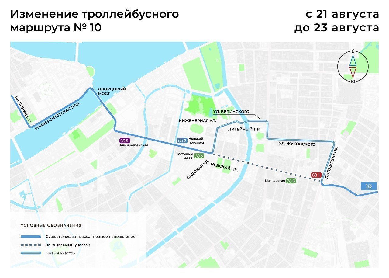 Как сообщили на сайте ГКУ «Организатор перевозок», также с 21 по 23 августа изменится трасса троллейбусного маршрута №10.