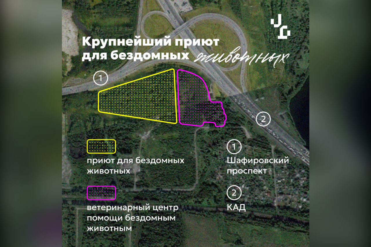 Как сообщили в пресс-службе Красногвардейского района, место расположения будущего комплекса уже определено – территория между Кольцевой автомобильной дорогой (КАД) и Шафировским проспектом. Проект включает два ключевых объекта: современный приют для животных, амбулаторный центр ветеринарной помощи.