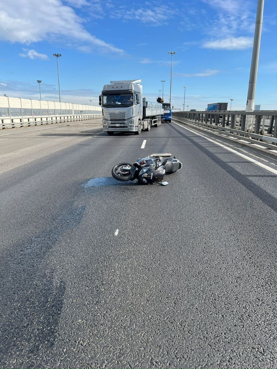«Мотоциклист двигался по внутреннему кольцу КАД в сторону Пулково и был сбит минивэном «Пежо», – отметили авторы поста и опубликовали фото.