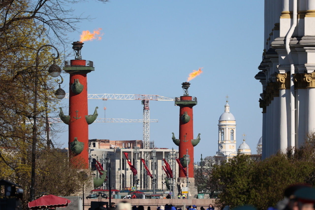 Кроме того, на стрелке Васильевского острова зажгут факелы Ростральных колонн. Они будут гореть с 20:50 до 23:30.