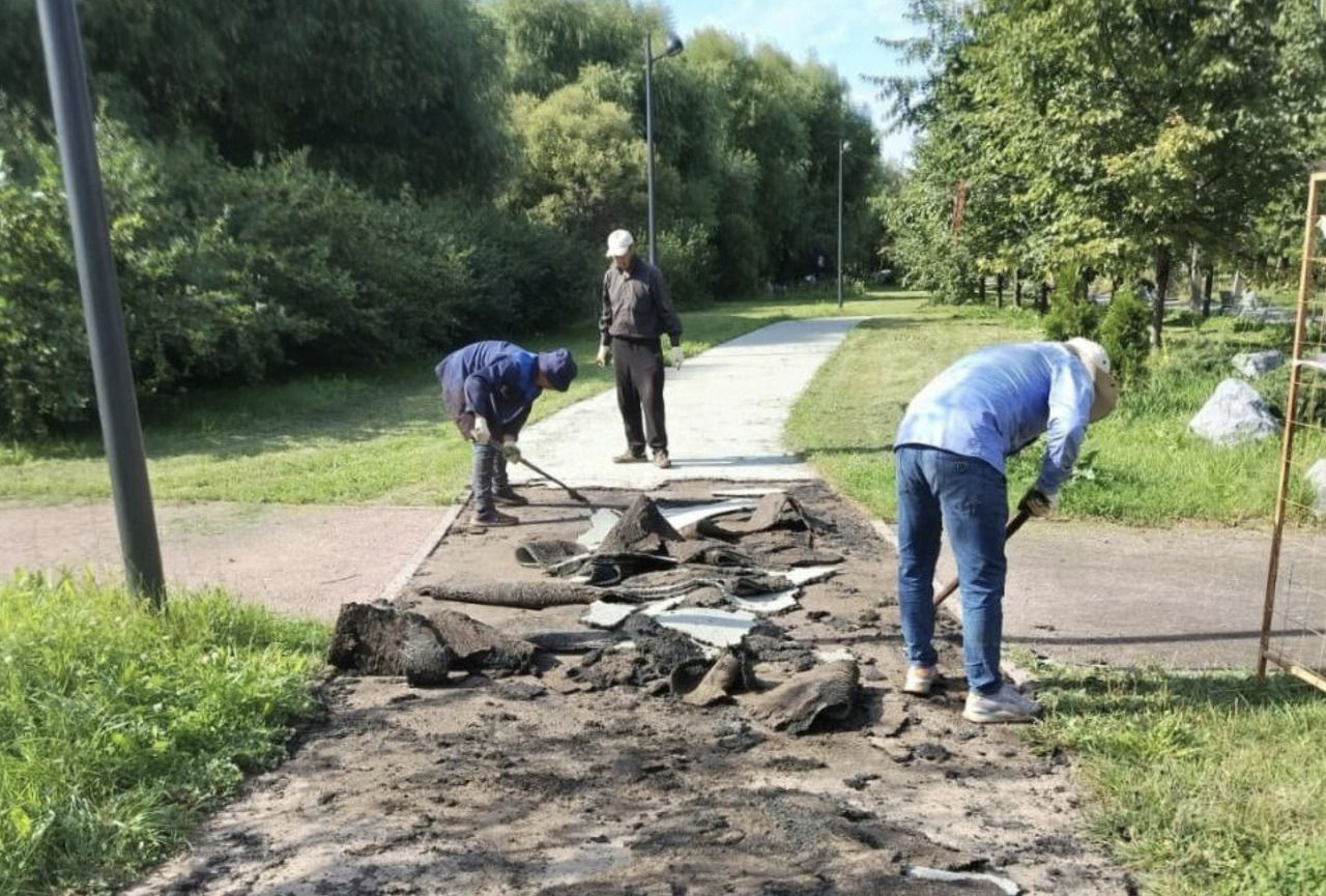«Старый слой уже демонтирован – территория готова к укладке нового травмобезопасного, – говорится в сообщении. – Свежеуложенный материал высыхает около двух суток, в течение которых нельзя заходить за установленные ограждения».