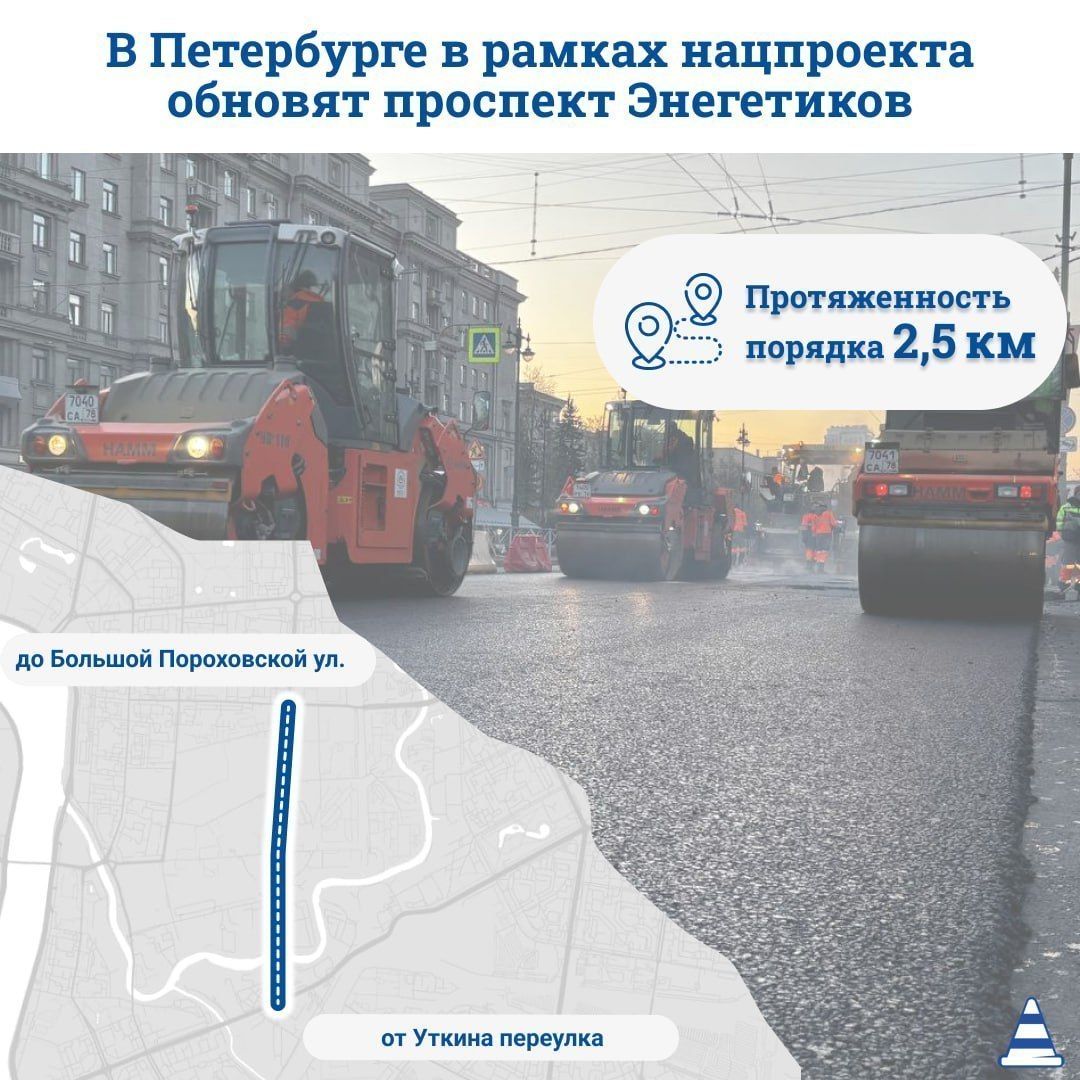 В Петербурге отремонтируют участок протяженностью 2,5 км от Уткина переулка до Большой Пороховской улицы на проспекте Энергетиков.