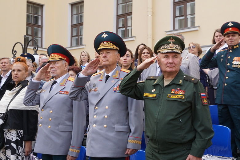 Генерал армии Евкуров зачитал поздравление от имени министра обороны России. А Игорь Потапенко поздравил суворовцев от имени губернатора города Александра Беглова.