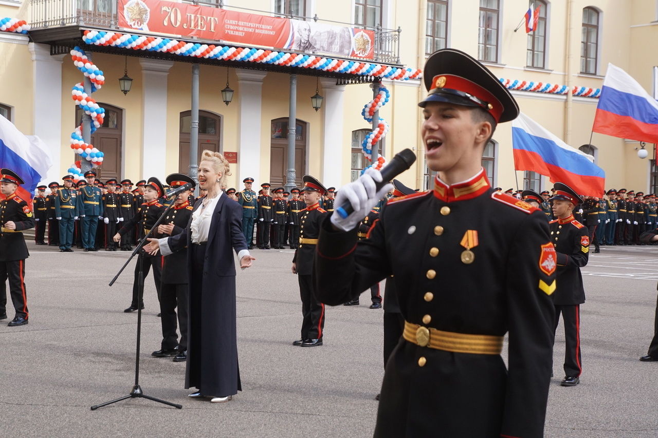 Торжества продолжили выступлением суворовцев и гостей, в том числе певицы Юты и роты почётного караула Ленинградского военного округа.