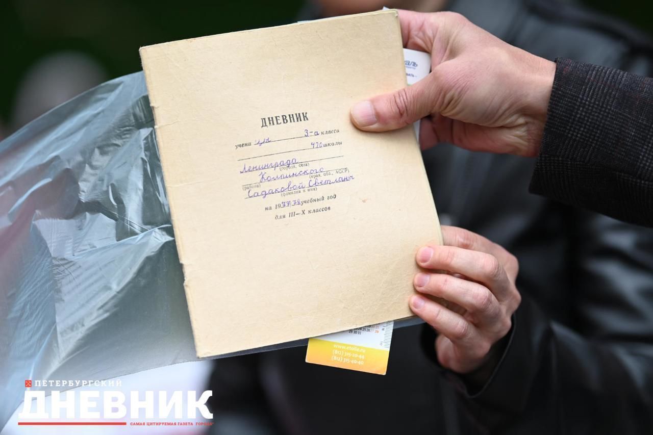 Петербурженка Светлана Садакова стала первым гостем городского медиадня на «Книжных аллеях», который принес свой школьный дневник и получил подарок от «Петербургского дневника».
