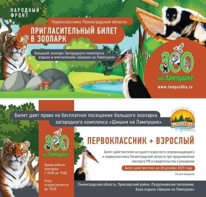 Ленинградское отделение «Народного фронта» предложило дополнить традиционный подарок первокласснику билетами в зоопарк, новыми впечатлениями и новыми семейными традициями.