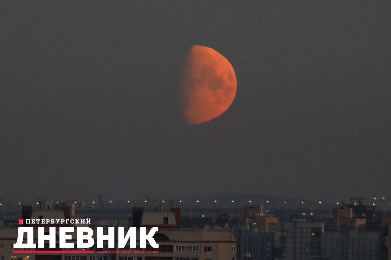 В Петербурге заметили красную луну, которая также называется кукурузной. Название «кукурузная» луна начала осени получила от коренных жителей Америки. Такая луна сигнализировала, что настало время собирать урожай. Кадрами явления поделился фотограф «Петербургского дневника».
