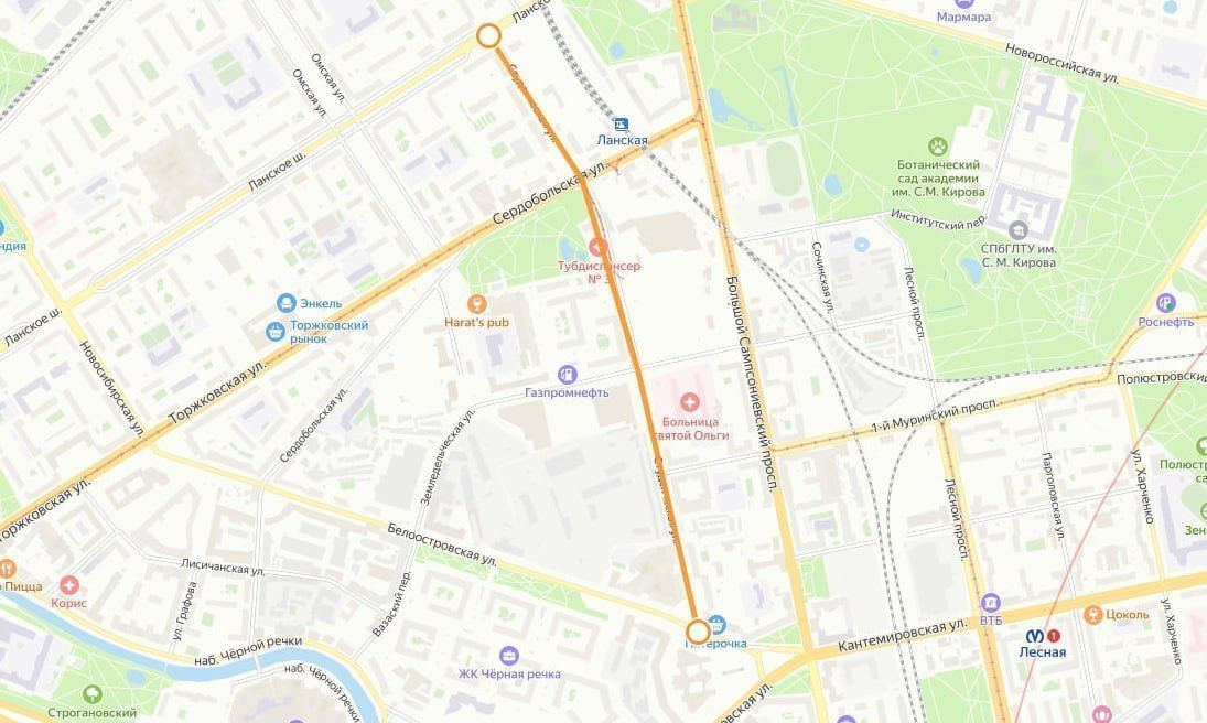 В Приморском районе Петербурга с 3 сентября (22:00) по 4 сентября (07:00) закроют движение транспорта по Студенческой улице в створе Сердобольской улицы, сообщили сегодня в пресс-службе Комитета по развитию транспортной инфраструктуры.