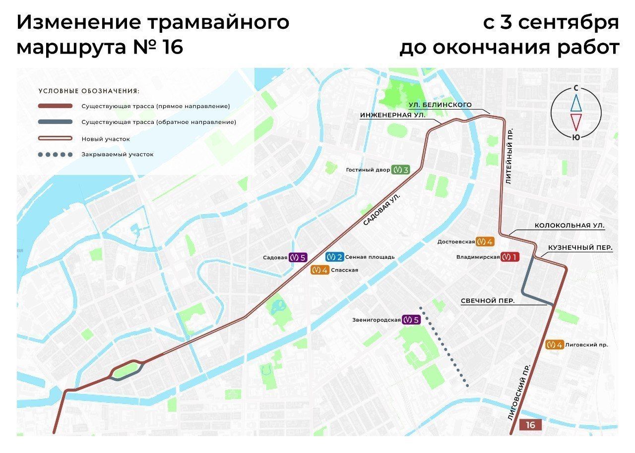 Так, будут внесены изменения в трамвайный маршрут №16 «Ул. Самойловой – пл. Стачек»: