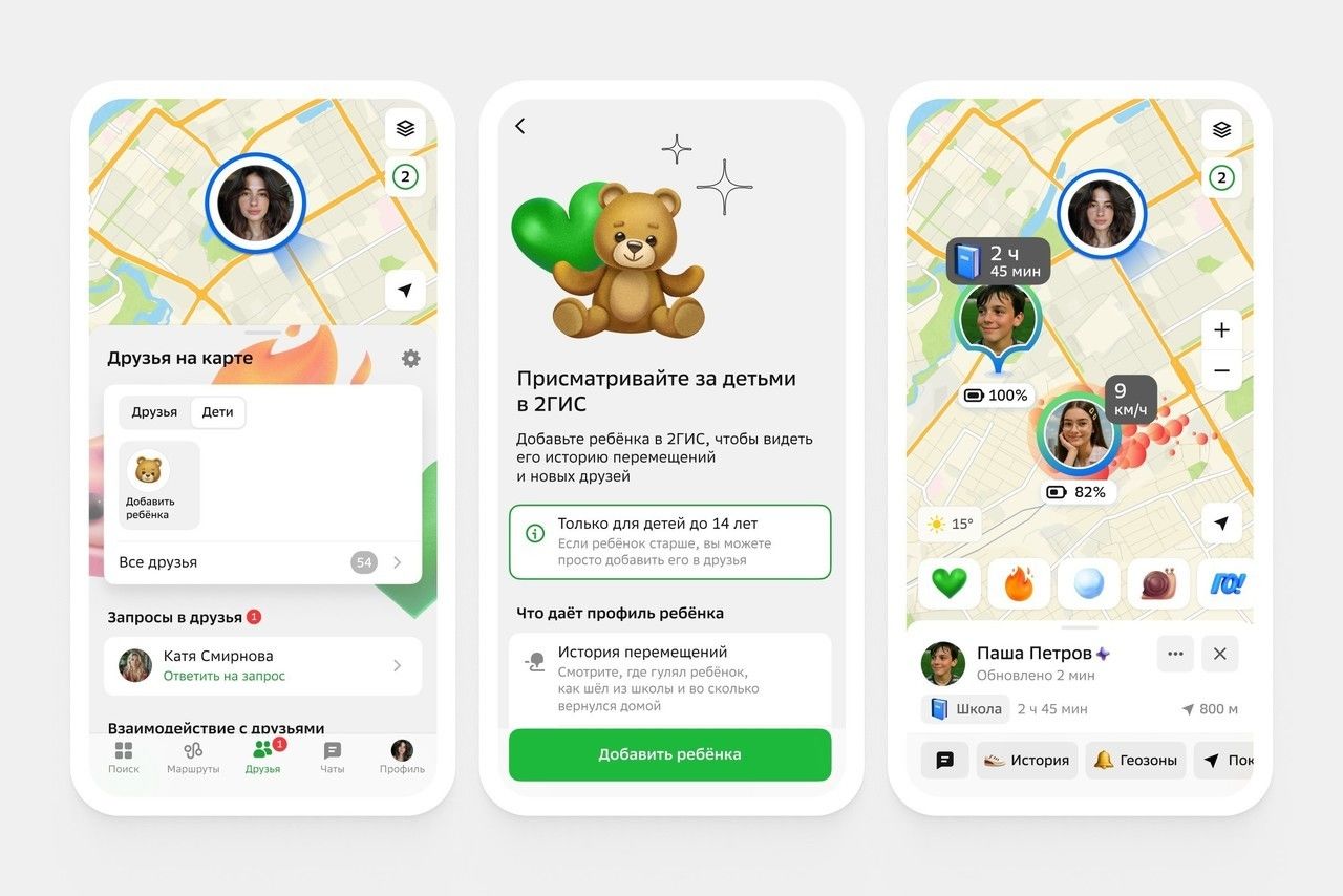 Подключить детский профиль просто: достаточно добавить ребёнка в друзья, нажать «Сделать аккаунт детским» и ввести код на его устройстве. Всё — теперь ребёнок будет выделяться на карте специальным маркером, а родитель получит доступ ко всем функциям. Она бесплатна и доступна для всех в геосервисе 2ГИС.