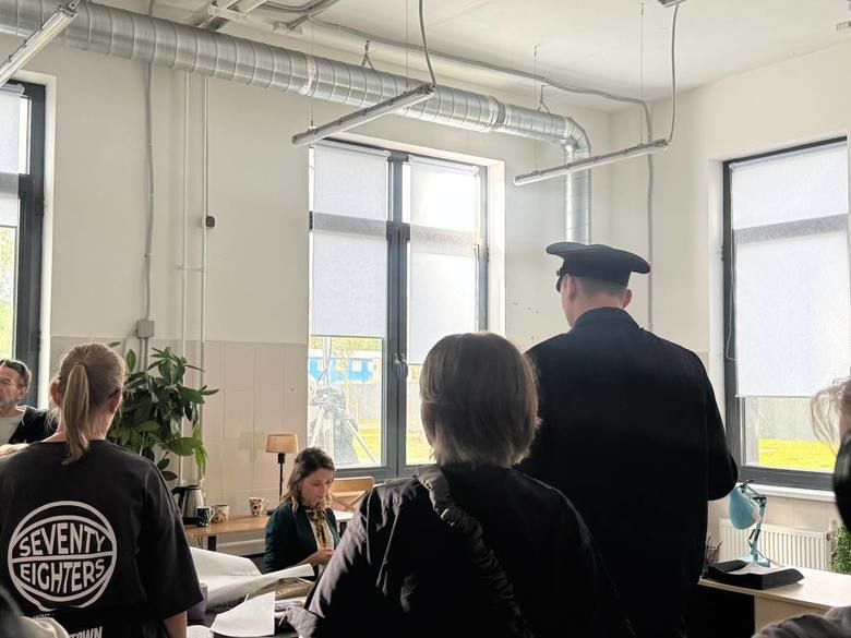 На площадке царит ощущение настоящего двора: декорации новостройки, шум реплик, детские качели в углу – всё это похоже на реальность.