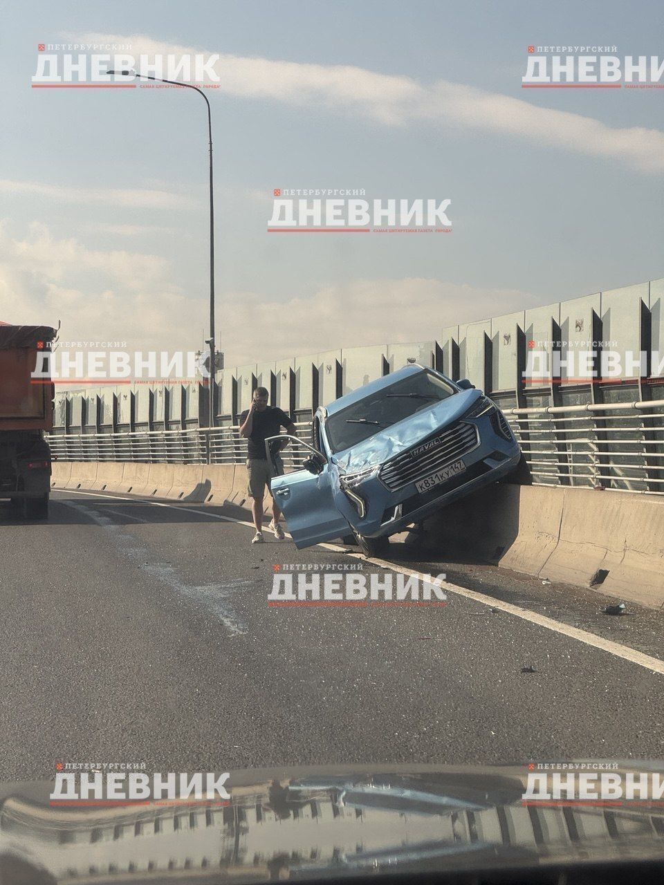 На мосту Бетанкура в Петербурге случилось массовое ДТП, в которое угодили два легковых автомобиля и один грузовой. Сильно пострадали легковые машины. Китайский Haval голубого цвета даже занесло на ограждение.