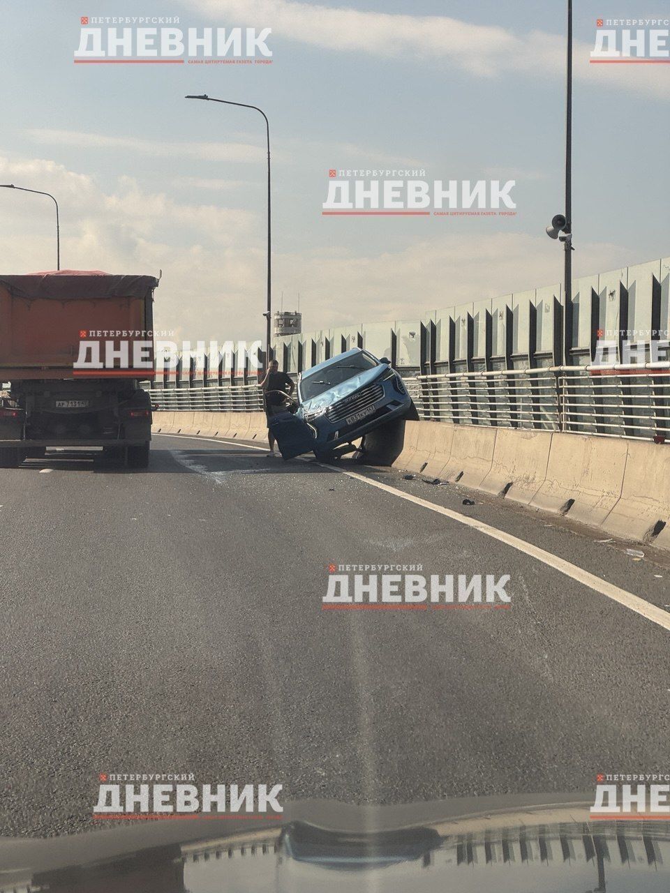«Кармагеддон на Бетанкура»: сразу три автомобиля попали в ДТП на мосту в Петербурге