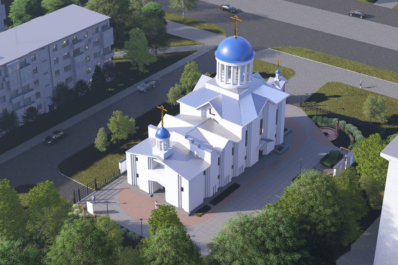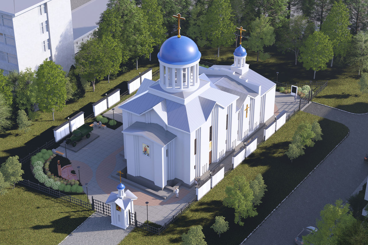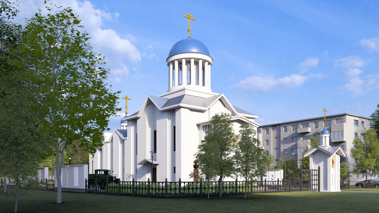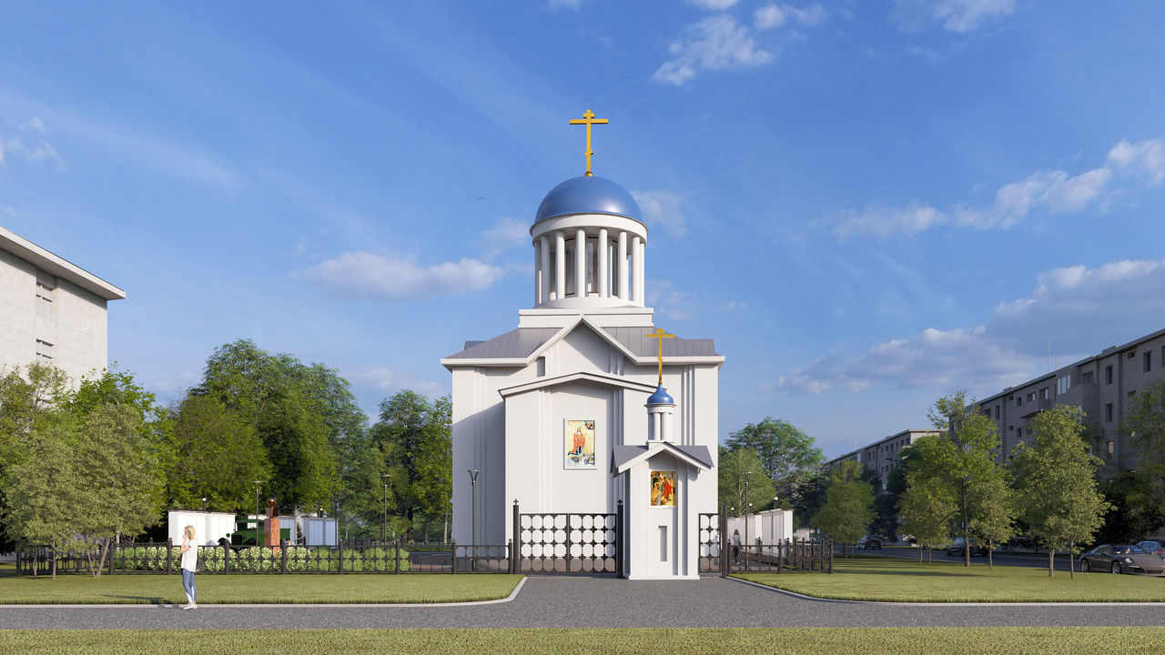 Алтарная часть здания, обращенная на Бухарестскую улицу, будет украшена колоннадой. Увенчает всю композицию купол с восьмиконечным золоченым крестом, символизирующим победу жизни над смертью.