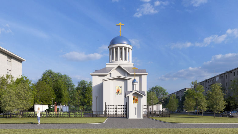 Будущие фасады храма будут окрашены в белый цвет, являющийся характерной чертой русской архитектуры. Цвет кровли – нейтральный серо-голубой. В том же цвете будут выполнены главный купол, а также алтарный выступ и звонница.