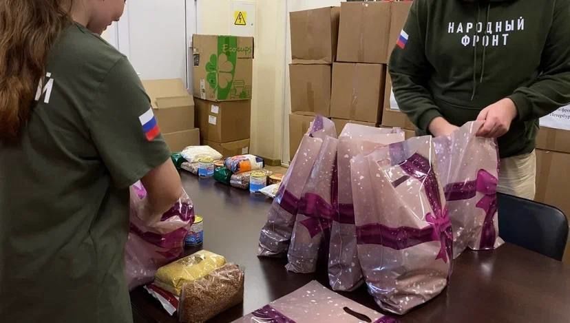 Так, в наборы включили все необходимое: крупу, макароны, тушёнку, сгущёнку и сладости к чаю. Наборы передали жителям Калининского района.
