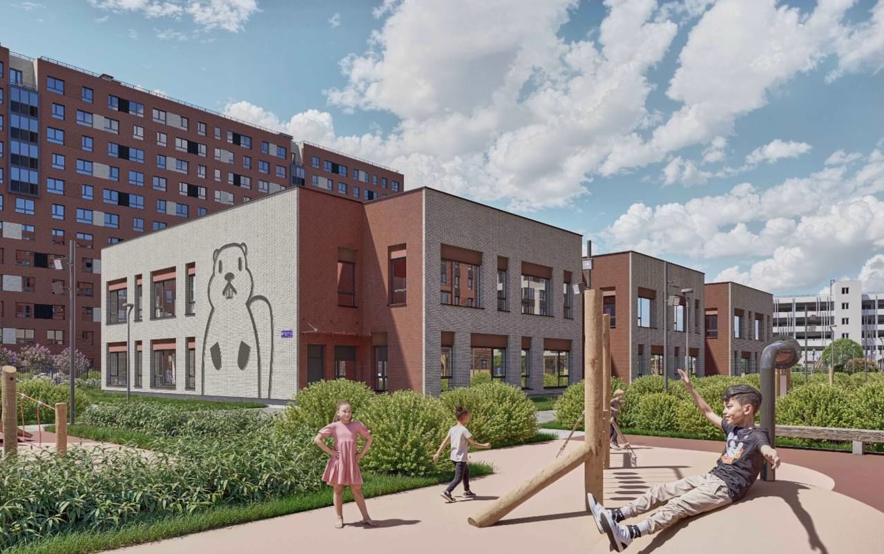 В новом учреждении будут предусмотрены игровые и спортивные площадки, а также почти 3 тысячи квадратных метров озеленения и парковки для родителей и сотрудников.
