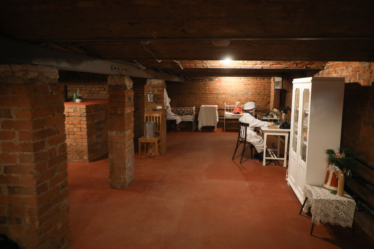 «Здесь было оборудовано 14 бомбоубежищ. Самое большое находилось в хирургическом корпусе, там был самый большой подвал, – рассказала «Петербургскому дневнику» директор вузовского музея Ирина Савина. – Когда возникла мысль воссоздать экспозицию бомбоубежища, оказалось, что лучшие условия для ее оформления – в нынешнем административном корпусе. Точнее, в его подвале. Здесь тоже было бомбоубежище».