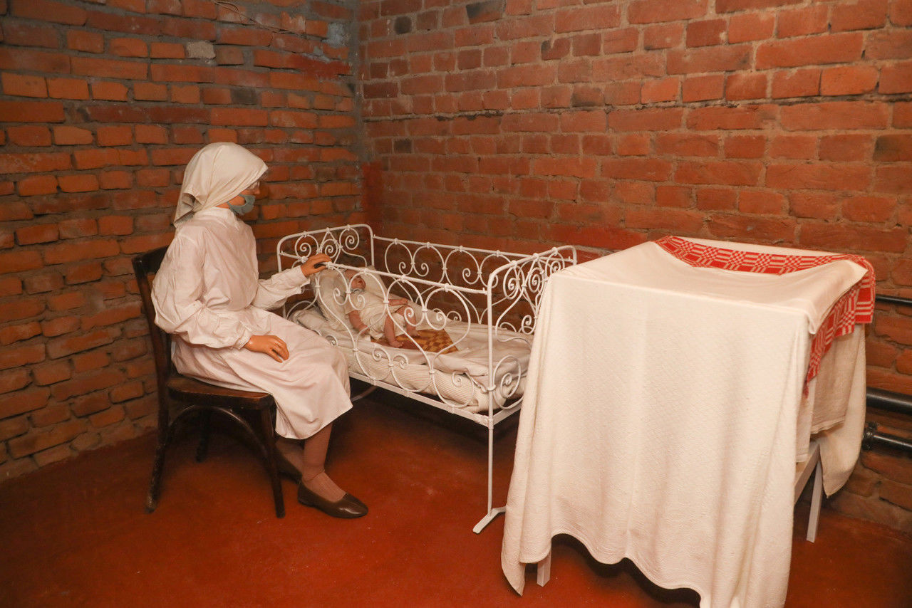 «Когда мы оформляли экспозицию, наши сотрудники жаловались, что в подвале нечем дышать, тут низкие потолки и нет окон. А медики с детьми здесь жили полгода! – отметила Ирина Савина. – В самую суровую блокадную зиму укрывали детей несколькими одеялами и даже матрасами, носили и кипятили воду, проводили медицинские манипуляции. Окна для проветривания удавалось открывать очень редко, но детей все же старались выносить на улицу, чтобы они хоть немного подышали воздухом. Потом появился свой печник, детки вышли из морозного оцепенения, сидели у буржуйки, жарили черный хлебушек, медсестры им рассказывали сказки».
