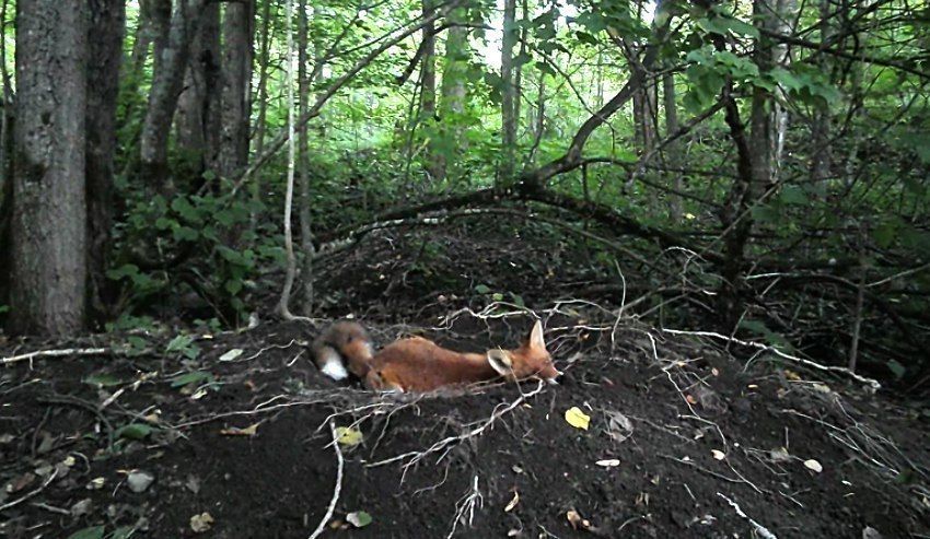 В Приозерском районе Ленинградской области запечатлели храброго лисенка, который нашел лежанку кабанихи и отважно решил в ней передохнуть. Об этом рассказал петербургский биолог Павел Глазков в своем телеграм-канале «Каждой твари по паре».