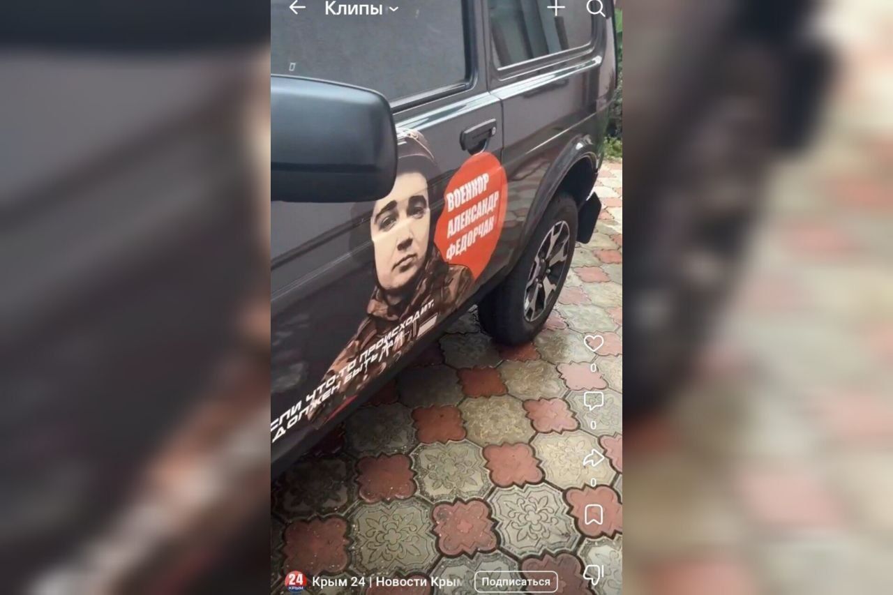 В Крыму отец погибшего военного корреспондента Александра Федорчака оформил внедорожник изображением сына в память о нем. Об этом Сергей Федорчак рассказал на своей странице в соцсети «ВКонтакте» и опубликовал видео, передает «Крым24».