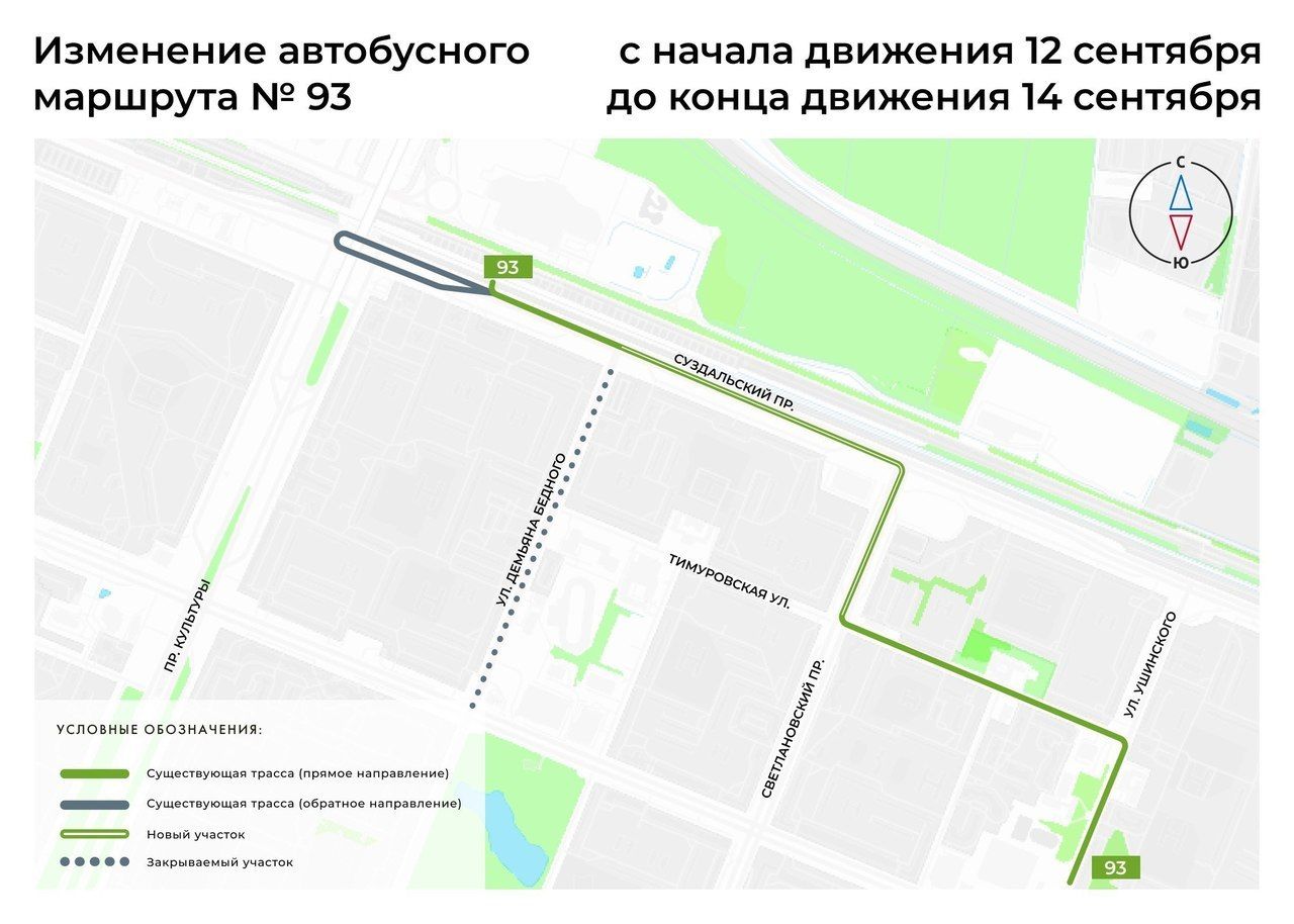 В связи с производством работ по ремонту дорожного покрытия на улице Демьяна Бедного с начала движения 12 сентября до конца движения 14 сентября вносятся изменения в трассы пяти автобусных маршрутов № 69, 93, 193, 208, 240.