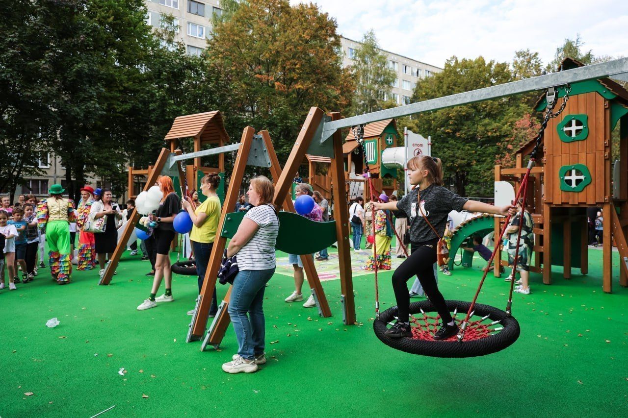 «Построили площадку с песочным двориком, каруселью и обучающими панелями, – говорится в сообщении. – Ребята постарше получили целый комплекс различных качелей и других игровых сооружений. Для подростков и взрослых обустроена спортивная зона с брусьями, рукоходом и турником. Ну а для тех, кто предпочитает более умиротворенное времяпрепровождение, оборудовано место с подвижными диванами и навесами».