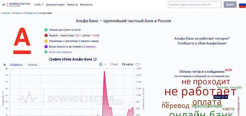 Свыше 12 тысяч человек пожаловались на сбои в приложении Альфа-банка