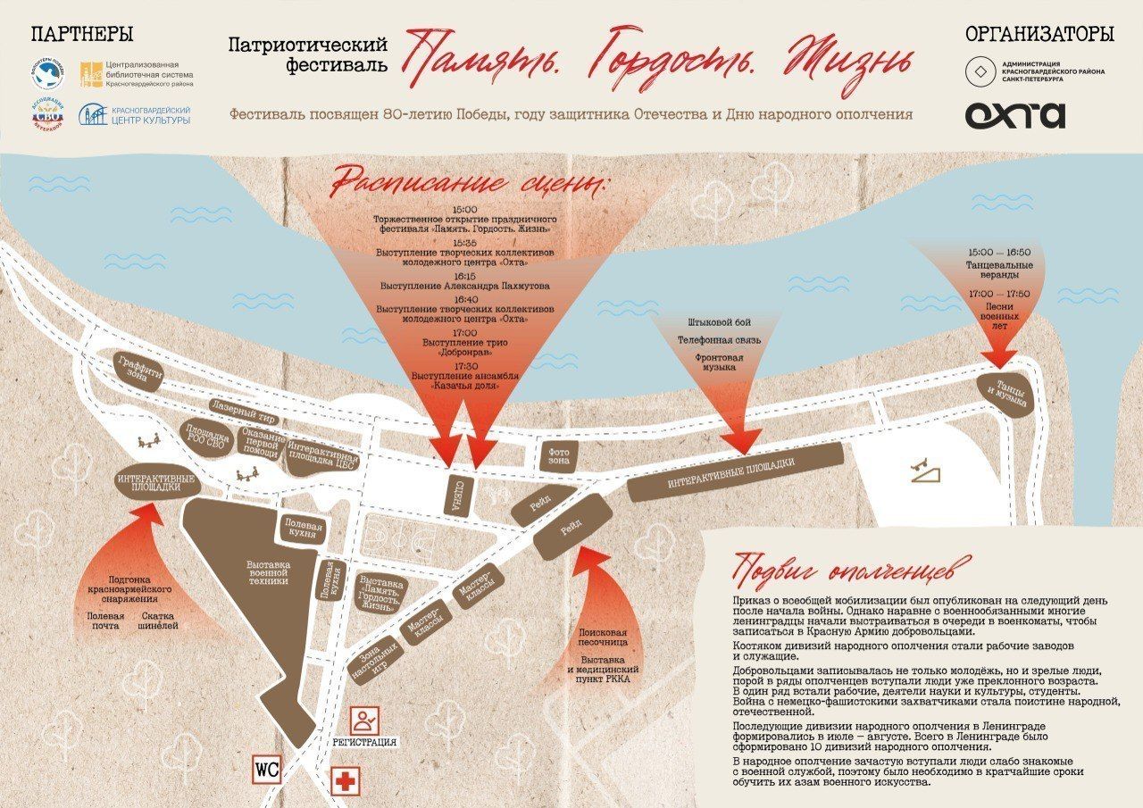 К 80-летию Великой Победы, Дню Ленинградского народного ополчения и Году защитников Отечества приурочен масштабный патриотический фестиваль, который пройдет 13 сентября в Петербурге по адресу: набережная реки Охты, улица Передовиков, 16к2, рассказали на портале VisitPetersburg.