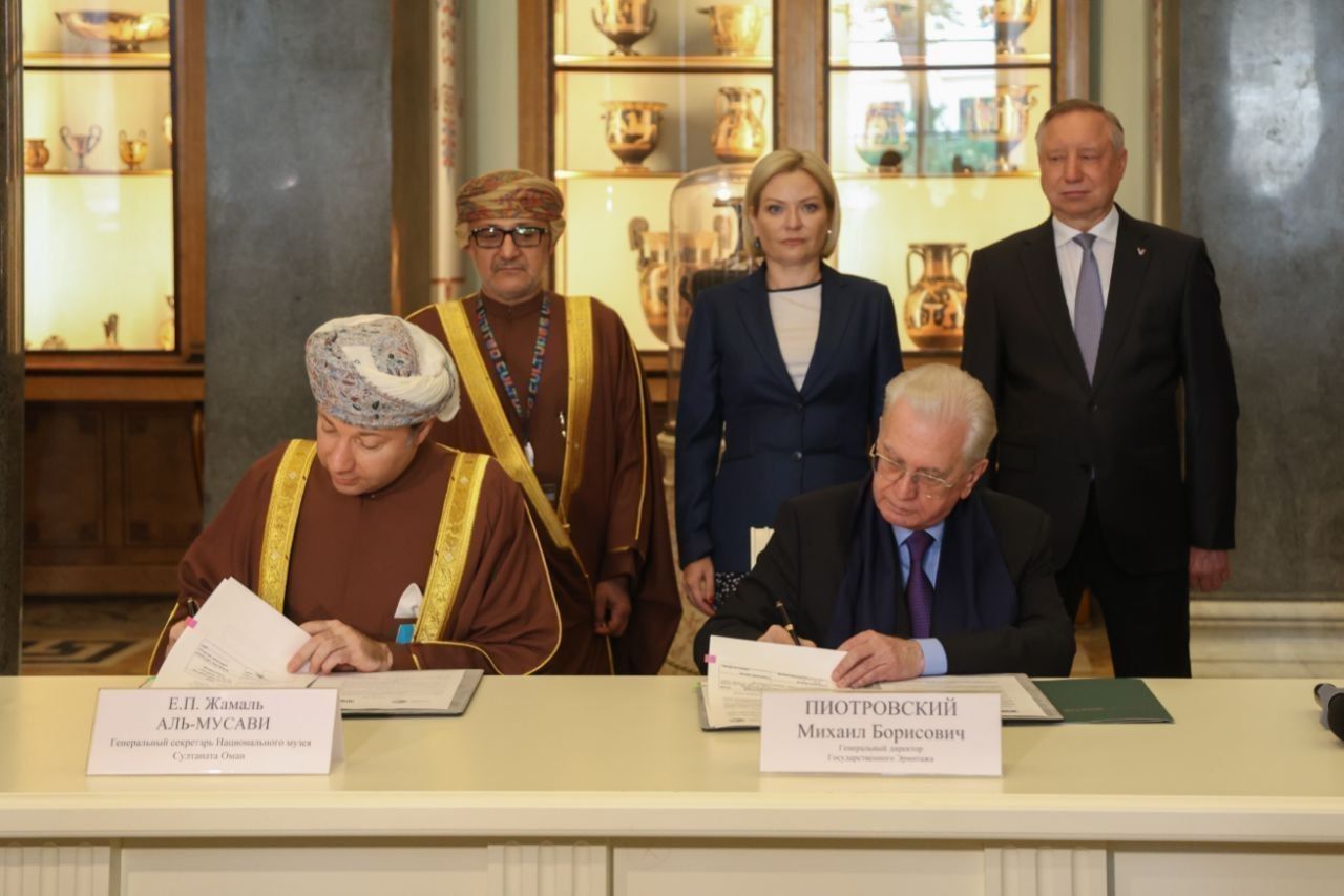 Церемония подписания состоялась на территории Эрмитажа в присутствии высокопоставленных свидетелей: губернатора Санкт-Петербурга Александра Беглова, министра культуры РФ Ольги Любимовой и представителей Султаната Оман.