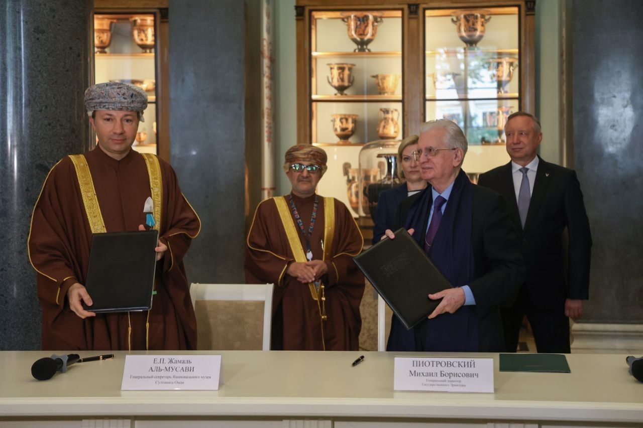 В Петербурге генеральный директор Государственного Эрмитажа Михаил Пиотровский и генеральный секретарь Национального музея Султаната Оман Джамаль аль-Мусави заключили историческое стратегическое соглашение о создании культурного проекта – центра-спутника «Эрмитаж – Султанат Оман».