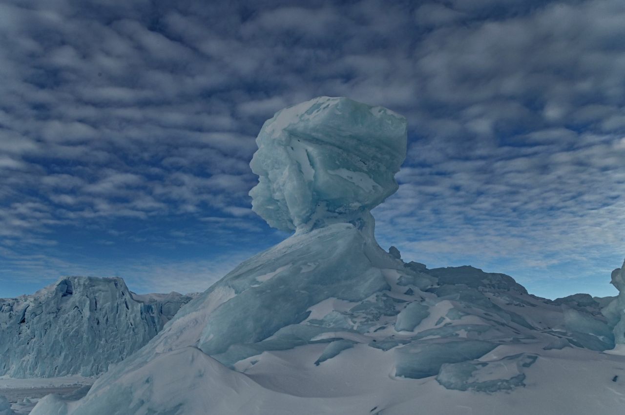 На опубликованном фото запечатлена ледяная скульптура среди белых просторов, которую создала сама природа.
