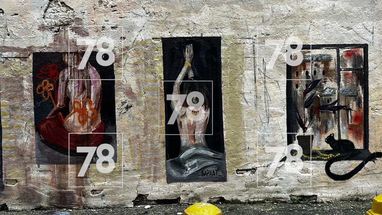 В Петербурге во дворе на улице Репина появилась картинная галерея. Как сообщает 78.ru, там можно увидеть семь произведений современного искусства. Они украшают стену жилого дома.