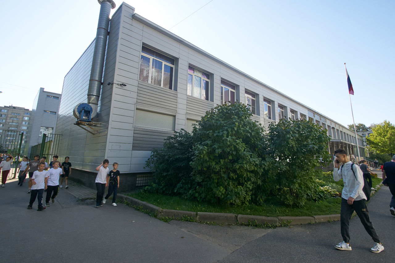 Сегодня купчинская школа № 305 выглядит как современный учебный кампус. Рядом с основным зданием расположены открытый стадион и современный крытый спорткомплекс, перед входом в школу на флагштоке реет триколор. Директор школы Елена Казанцева встречает нас в своем кабинете, на стене которого висит ее совместный портрет с экс-президентом РФ.