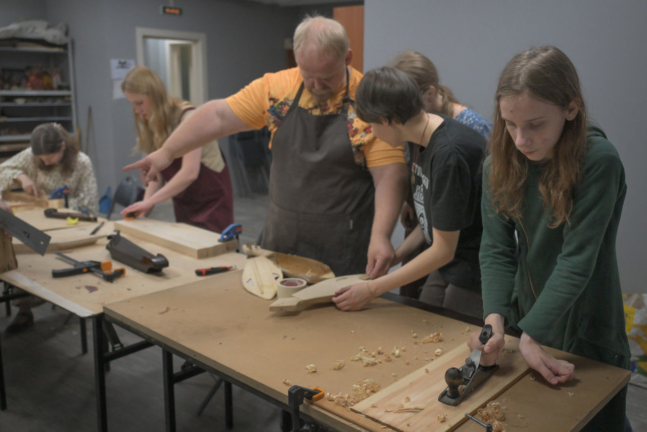 «Наша студия по изготовлению старинных музыкальных инструментов работает три года. За это время у нас уже накопились шаблоны и чертежи, основанные на этнографических источниках. Каждый из воспитанников сам выбирает, какой инструмент он хотел бы изготовить. Моя задача – им в этом помочь. Хотите смастерить гусли, кантеле, йоухикко – пожалуйста. Есть какие-то особые пожелания – на здоровье. Например, не так давно одна из участниц занятий захотела изготовить китайский музыкальный инструмент гуцинь. В итоге все получилось на отлично. В общей сложности в мастерской было изготовлено около ста инструментов руками более чем 65 участников», – рассказывает Николай Бируля.