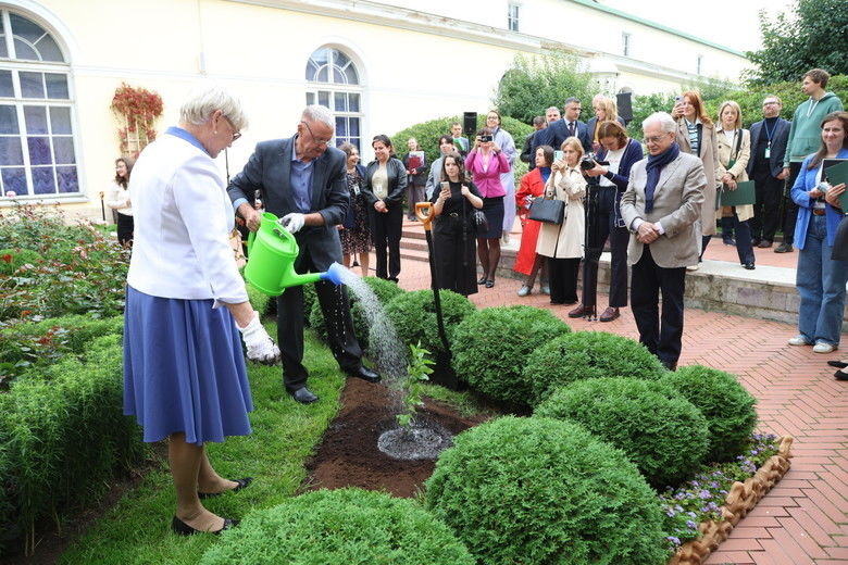 «Связь искусства и природы»: Михаил Пиотровский принял участие в высадке сирени сорта «Эрмитаж» в Висячем саду Малого Эрмитажа