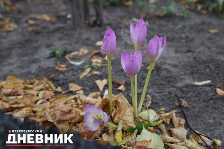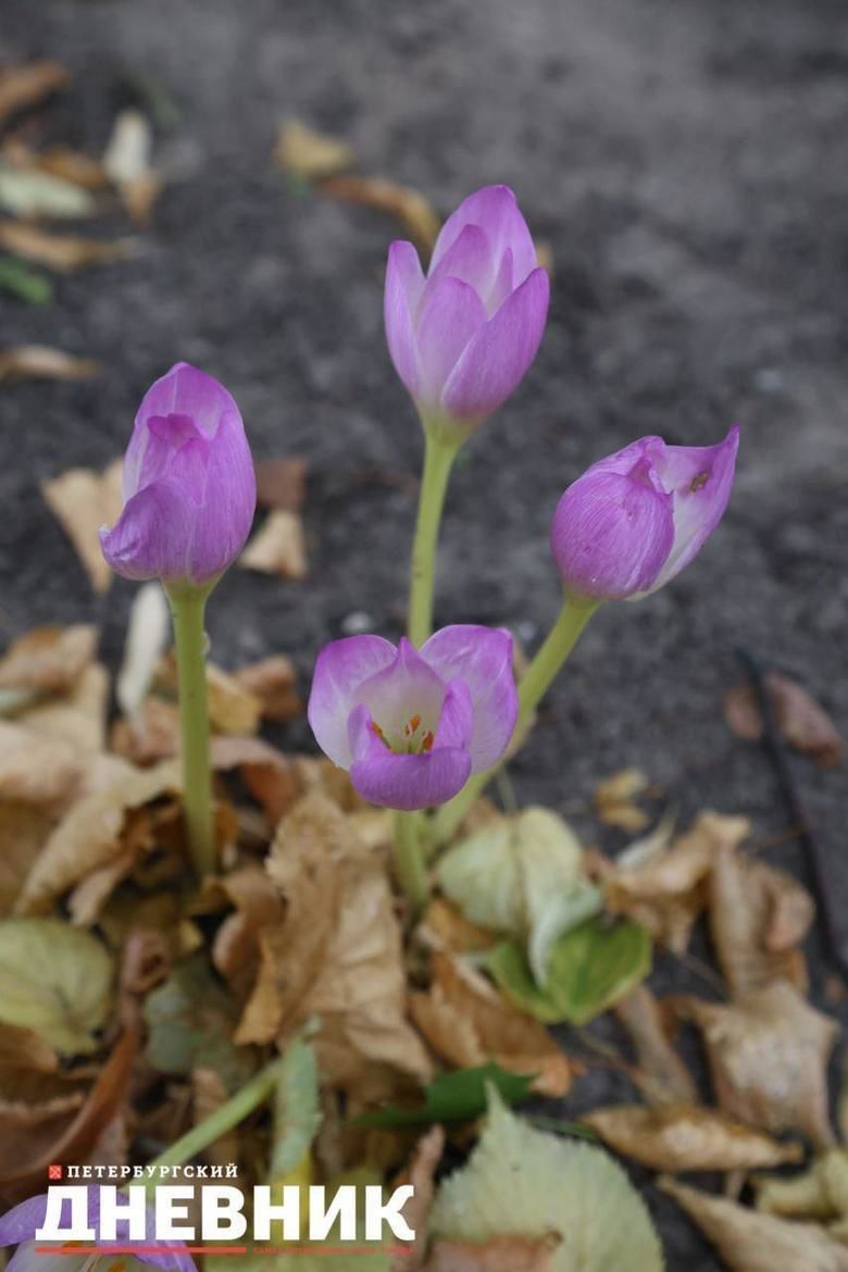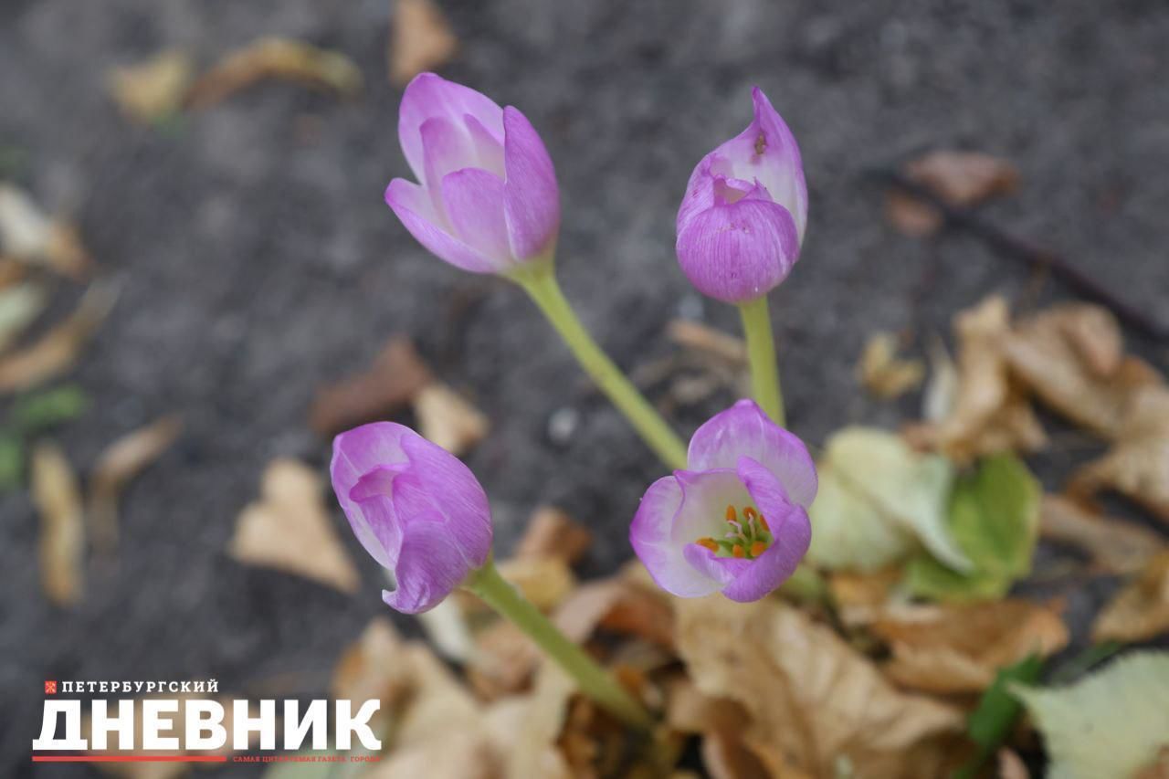 В Петербурге расцвел осенний безвременник, известный своим поздним цветением. Фотокорреспондент запечатлел красивые цветы в центре города, на Конной улице.
