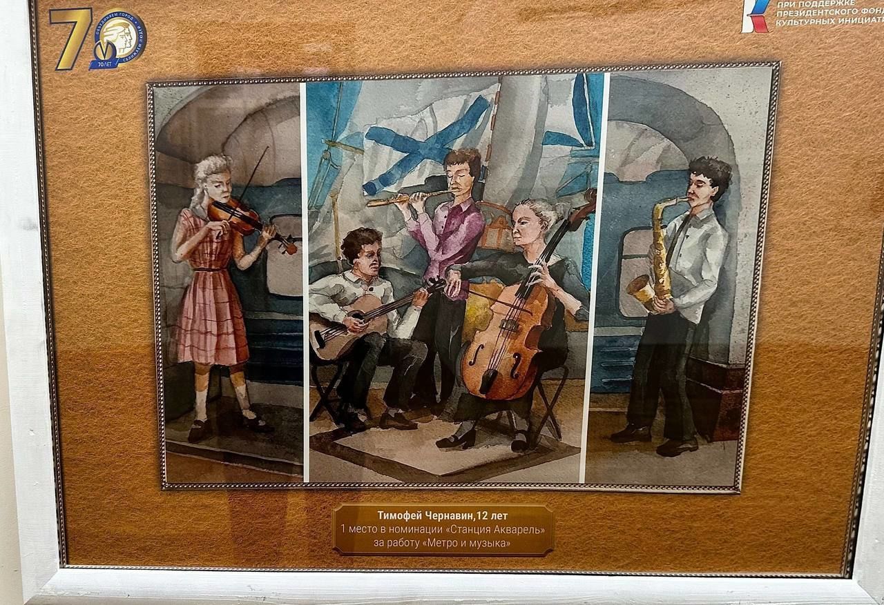 «На разных станциях я видел, как играют музыканты, и мне показалось это волнительным: среди толпы спешащих куда-то людей играют то на скрипке, то на гитаре мужчины и женщины. Они так увлечены, что, кажется, не замечают того, что происходит вокруг. Этот собирательный образ я решил показать в своей работе», – поделился Тимофей Чернявин.