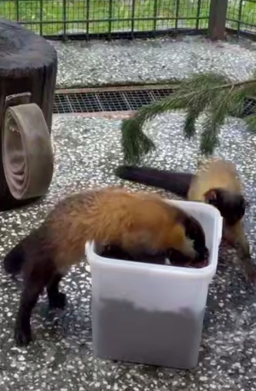 «Катрина сразу включила "экскаваторный режим" – лапы мелькают, нос ищет, победа близка. Но пока дама трудилась, Сильвер выбрал тактику профессионального диванщика: "Подожду, пока всё будет готово – и заберу". И ведь получилось», – с юмором подписали снятый видеоролик сотрудники зоопарка, опубликовав его в своем телеграм-канале.